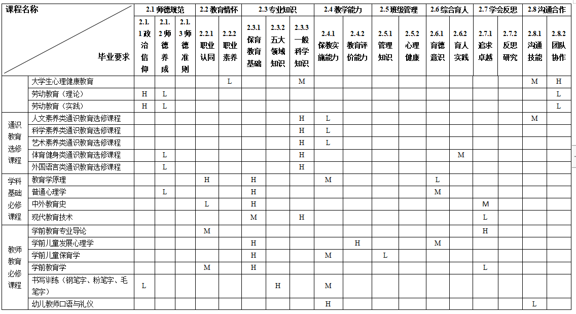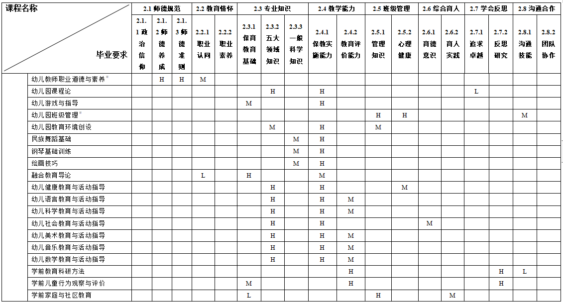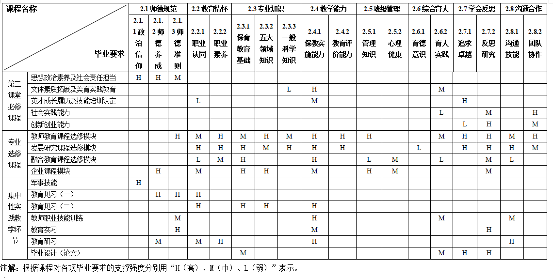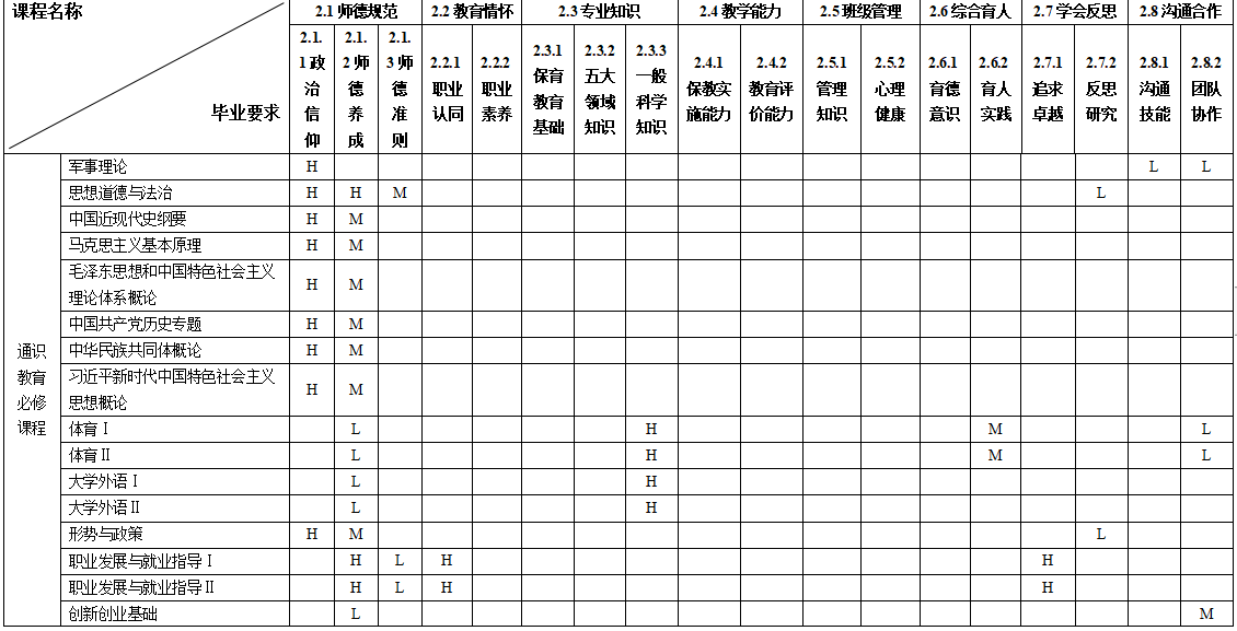 三、毕业要求与培养目标对应关系矩阵