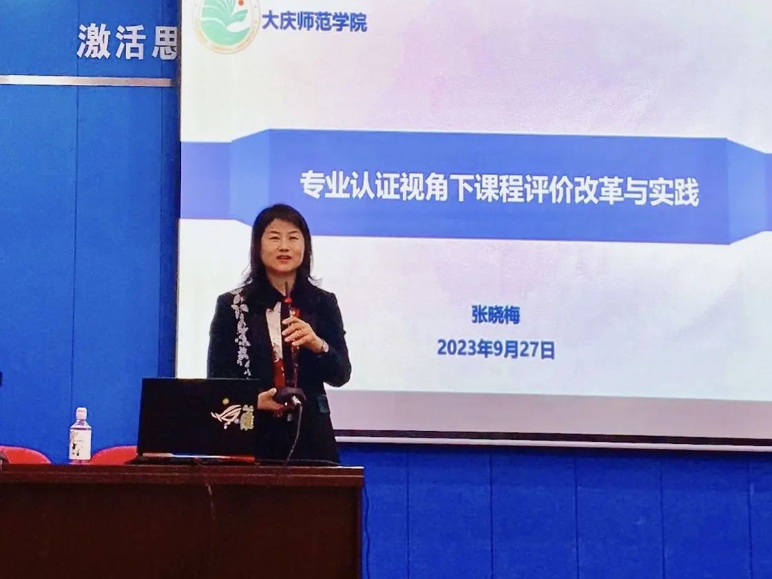 为落实国家教育改革发展和“十四五”教育发展提升行动计划需求,提升员工科学与人文素养,营造良好学术氛围,9月27日下午,伟德国际1946在图书馆寒地黑土大讲堂举办“专业认证视角下课程评价改革与实践”学术讲座。讲座邀请大庆师范公司教师伟德国际1946经理张晓梅教授主讲,伟德国际1946学前教育教研室主任田秋梅主持,伟德国际1946经理周姊毓、全体教师与21、22、23级员工共220人参加讲座。