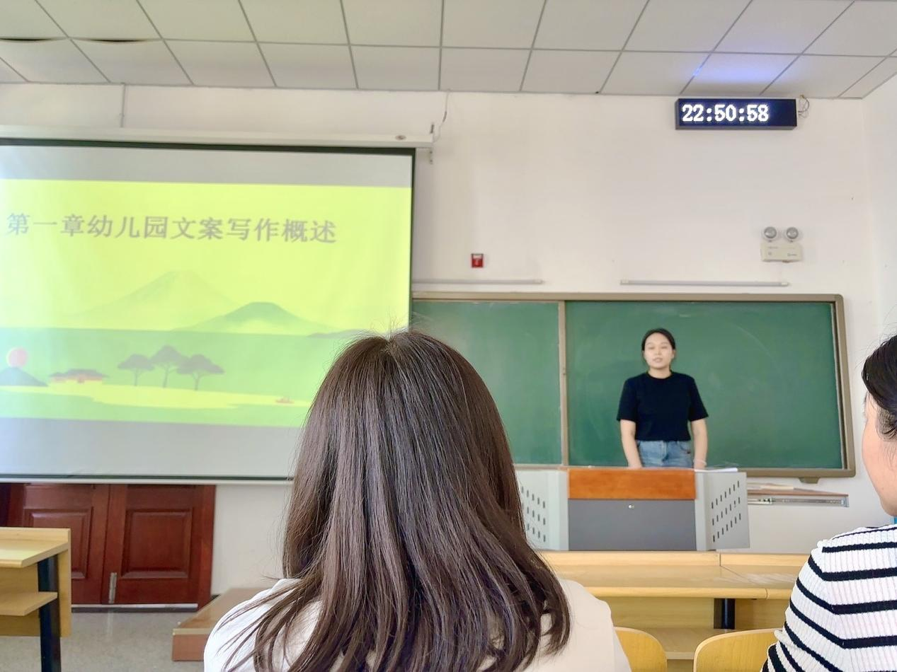 学前教育教研室的新任课老师分别就《幼儿园教育活动文案撰写》、《幼儿园班级管理》、《幼儿园课程论》等课程内容进行试讲。新任课老师准备充分、授课思路清晰、教姿教态得体,展现了良好的专业知识水平,试讲后听课教师针对试讲课程进行讨论和分析,并结合自身教学经验对给予课程教学建议。