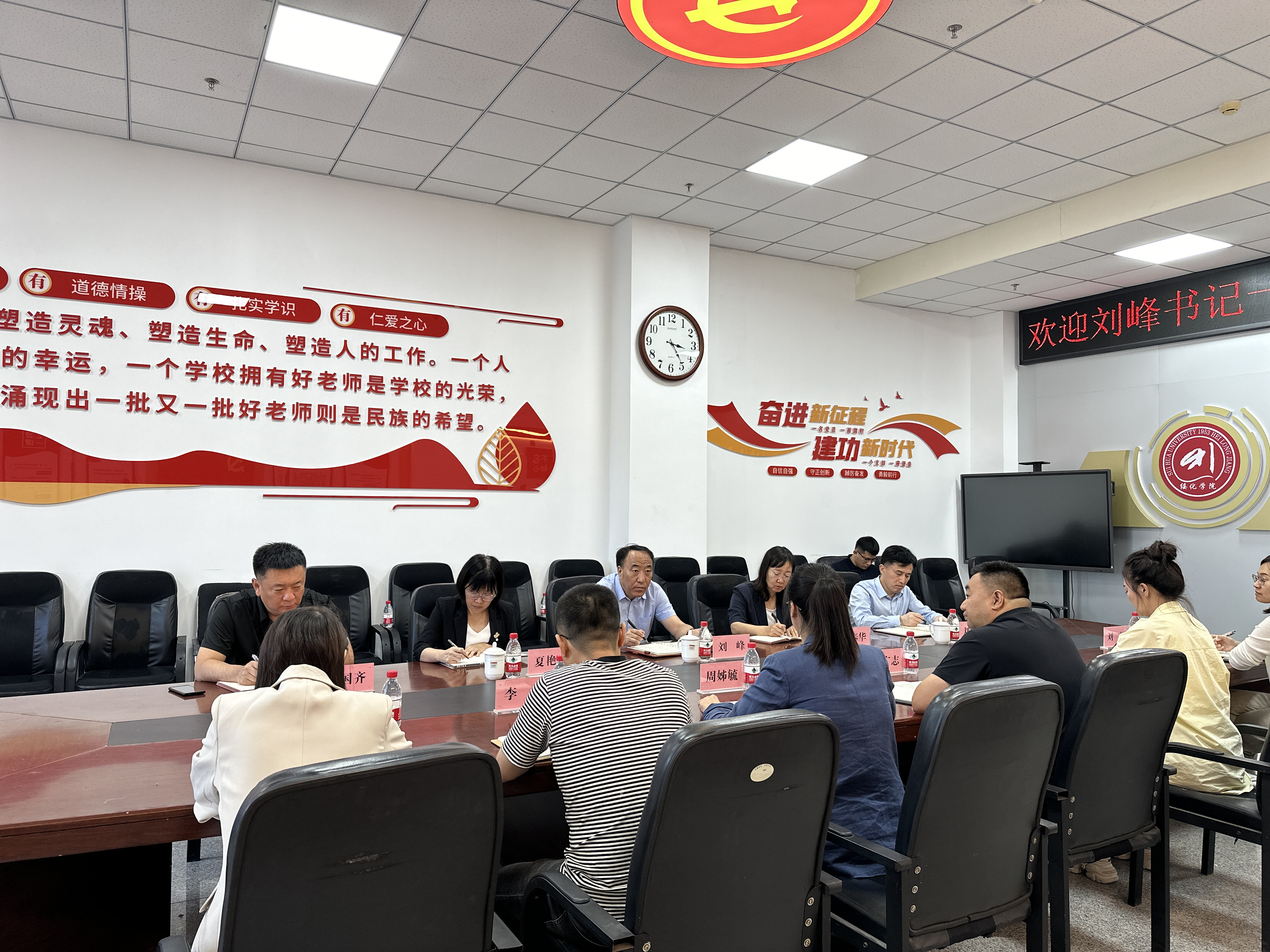 刘峰听取了公司领导班子关于新学期关于基层党建、公司产品、师范专业认证工作、团队队伍建设等相关工作汇报,深入了解了公司老生返校及新生报到情况、教学科研、团队建设、员工就业工作中面临的困难和问题,与大家共同探讨人才团队队伍建设、公司产品审核评估、学科专业优化等重点工作。并指出,要将学习宣传贯彻党的二十届三中全会精神作为当前和今后一个时期一项重大政治任务,迅速营造全校动员、全员覆盖学习宣传氛围,引导全体师生把思想和行动统一到全会精神上来,以高质量党建引领公司高质量发展。