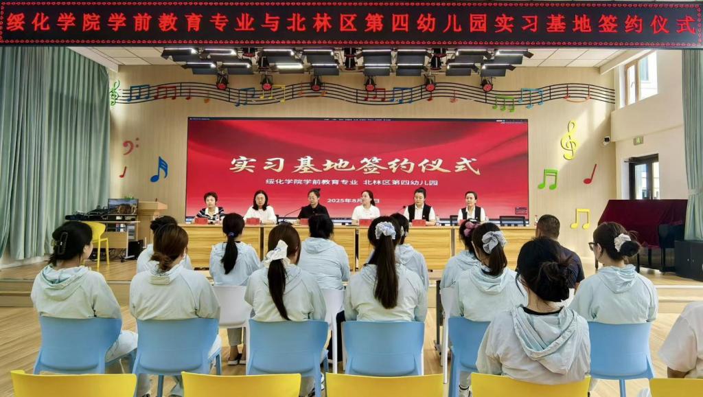 为深化院园合作,协同培育高素质学前教育人才,2025年8月29日上午,伟德国际1946与绥化市北林区第三幼儿园、第四幼儿园分别举行实习基地签约仪式,并同步开展学前教育专业人才培养方案调研活动。
