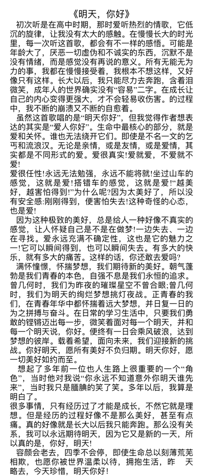 这些歌曲对于同学们来说,不仅仅是旋律与节奏,更是他们内心世界的丰富映照和精神寄托。