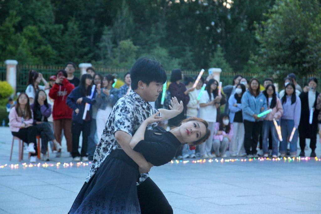 节奏欢快的开场舞《墨舞芳华》正式拉开了本音乐节的帷幕。公司学子身着黑红国风服装,动作整齐划一,以饱满的热情和昂扬的精神,一场精彩绝伦的表演