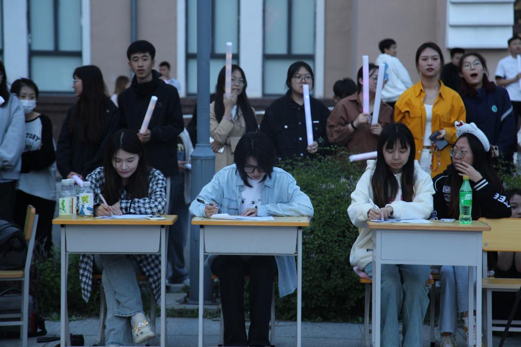 中场休息时间,同学们兴奋地聚集在抽奖区,期待着能够抽中自己心仪的奖品将现场的气氛推向高潮