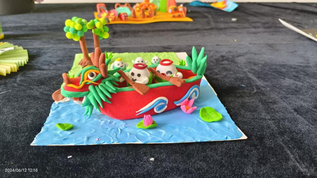活动过程中,同学们充分发挥自己的想象力和创造力,制作出了诸多精美的作品,如精致的龙舟模型,栩栩如生的粽子挂饰,小巧别致的斜挎包,创意贺卡等,这些作品不仅展现了同学们对端午节文化的深刻理解和创意诠释,更将传统文化与手工艺术完美融合。