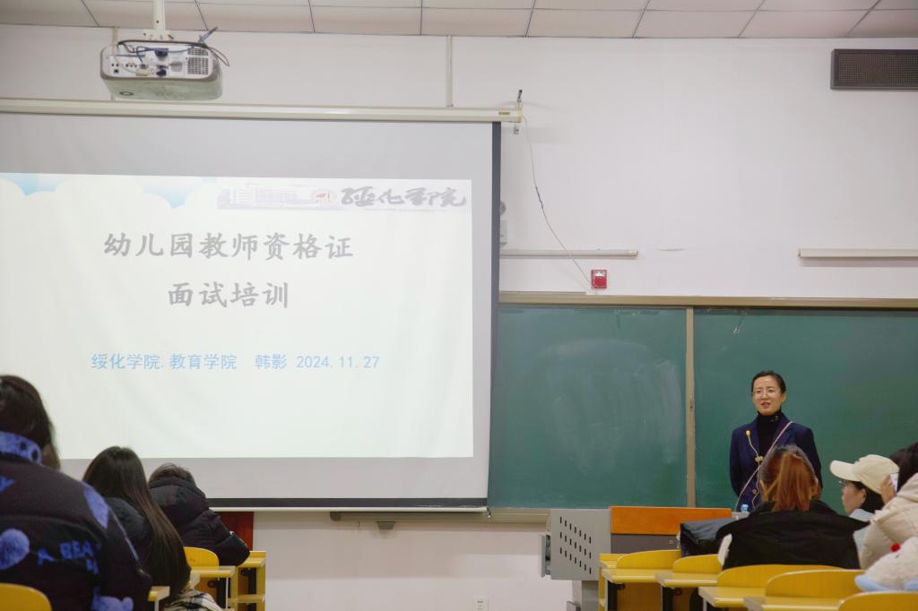 为迎接即将到来的教团队格证面试考试,帮助同学们了解教资面试流程与技巧,顺利考取教团队格证。11月27日至28日晚,伟德国际1946于崇德楼401教室举办教资面试辅导讲座,本次讲座由公司教师韩影与刘静主讲,全体同学积极参加。