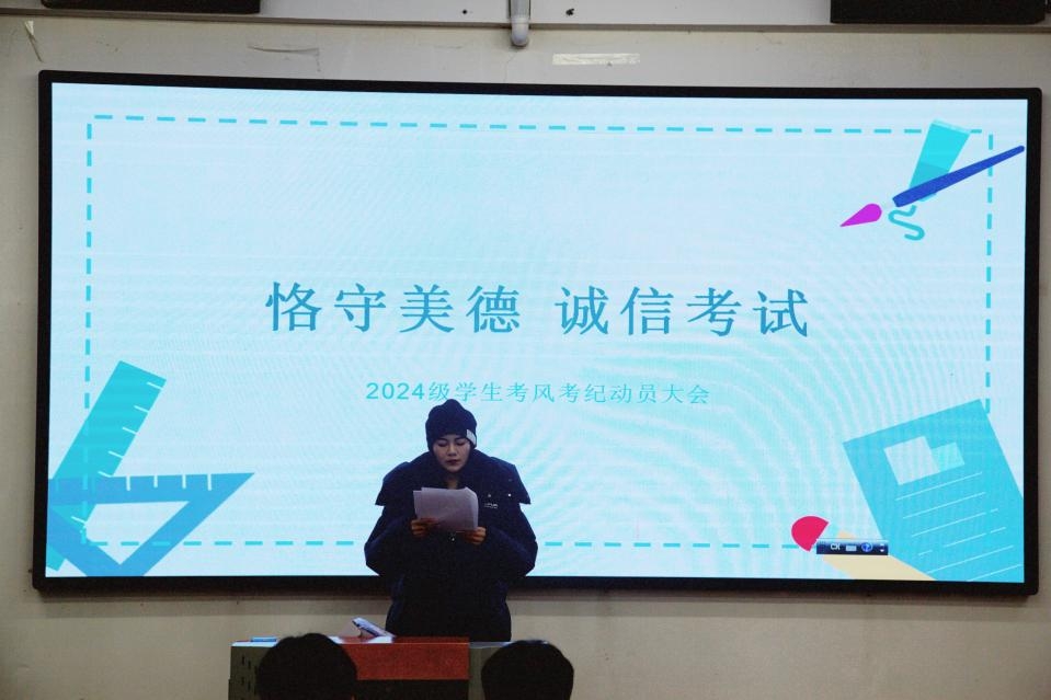 李恒强调了考风考纪的重要性,要求员工们端正考试态度,并阐述了考试作弊的严重后果。在号召同学们遵守考纪、诚信考试的同时,也祝愿同学们在即将到来的期末考试中取得好成绩。