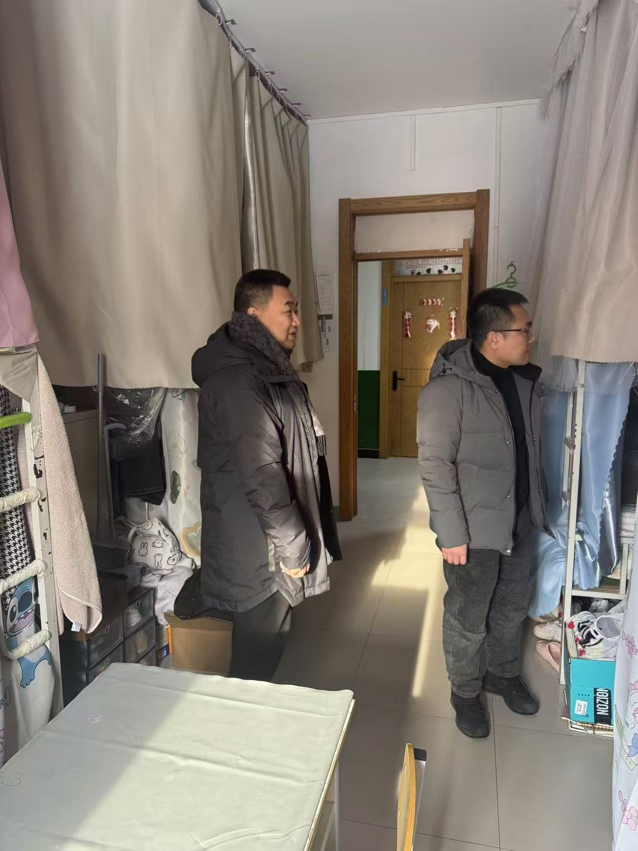 为进一步加强员工宿舍的安全管理,确保假期期间宿舍环境的安全稳定,12月28日,公司党总支书记曹广志、党总支副书记黄静、辅导员李恒深入员工宿舍检查员工离校后的安全与卫生情况,切实做好员工离校后的安全工作。