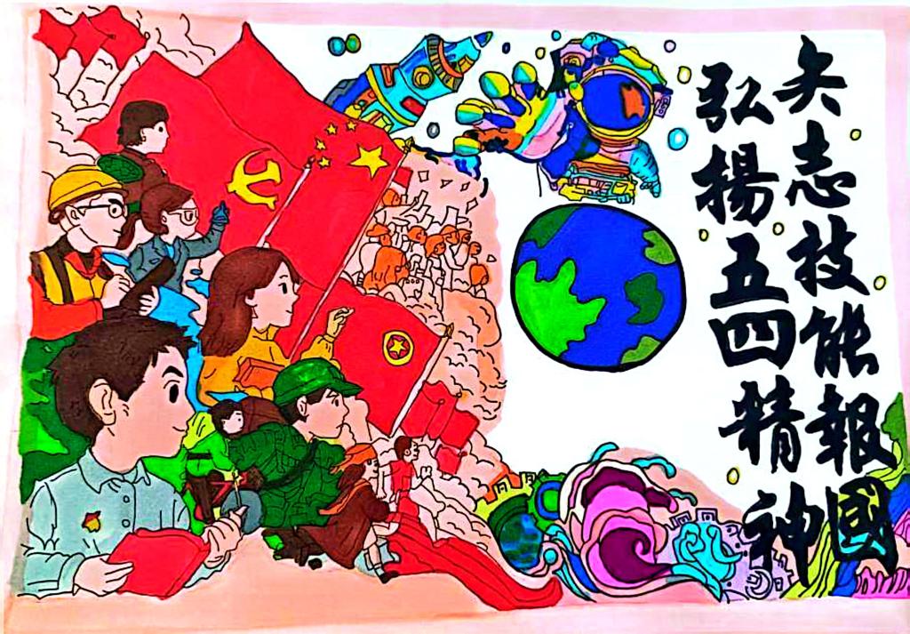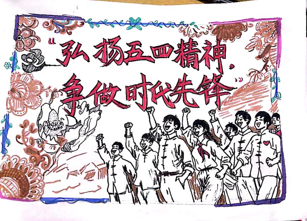 在设计标语环节,同学们围绕红色文化、爱国精神、青春奋斗等主题制作手绘标语。简洁有力的文字,朗朗上口的语句,都凝聚着同学们担当奉献的热忱。笔尖流淌的不仅是墨痕,更是对五四精神的深刻诠释与传承弘扬的坚定决心。