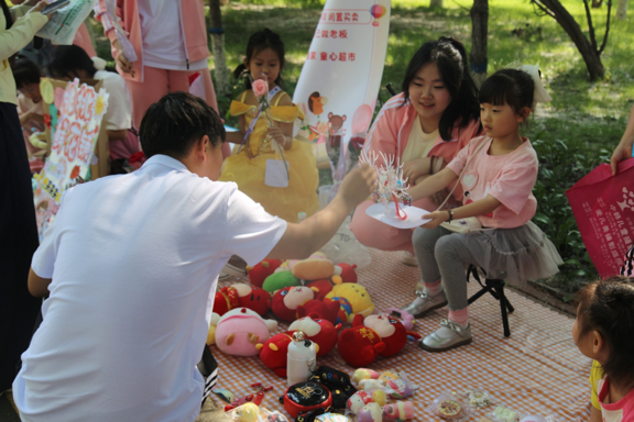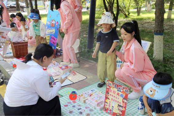 活动现场,校园摇身一变成为热闹非凡的欢乐市集。小朋友们化身活力满满的“小摊主”,精神抖擞地“驻守”在自己的摊位前。摊位上,童趣的玩具琳琅满目,娇艳的花卉散发着迷人芬芳,自制的美味饮品更是深受欢迎。独具创意的商品标签和色彩绚丽的宣传海报相映成趣,点燃“市集”的活力氛围。