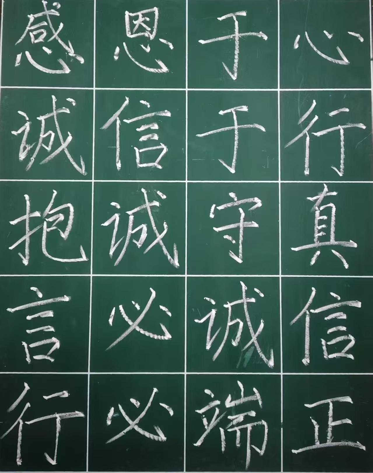 粉笔书写,黑板化作情感长卷,同学们踮足挥毫,顿挫有力的笔画间,赤子之心跃然眼前,每一道痕迹都诉说着对美德的深刻理解与真挚践行。