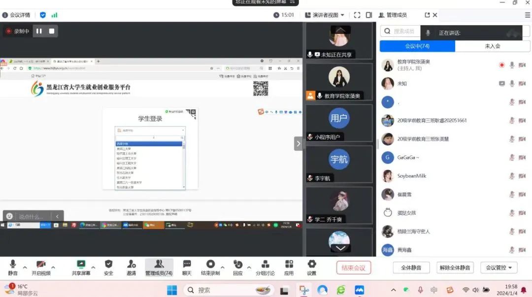 为给公司毕业生提供全方位的就业服务,做好毕业去向登记和档案转递工作,1月4日,伟德国际1946召开黑龙江省就业创业服务平台使用培训会,本次培训会由2020级毕业班辅导员张蔆奥讲解,全体毕业生参加。