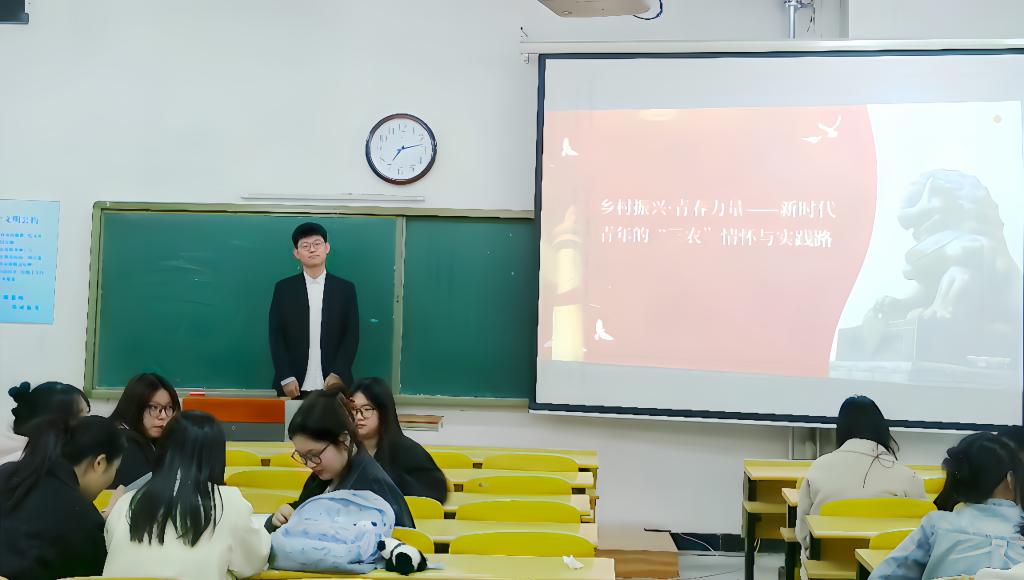 随后,丁健钊通过分享返乡创业青年吴疆以“立体农业 + 科技赋能”带动当地就业,以及驻村选调生陈快快运用“三钉工作法”推动乡村面貌焕然一新的真实案例,深入剖析了“创新思维与实干精神结合”在乡村振兴实践中的重要性与方法论。这些生动鲜活的案例,让同学们深刻认识到,乡村振兴不仅是宏大的战略目标,更是需要每一个人脚踏实地去践行的伟大事业。