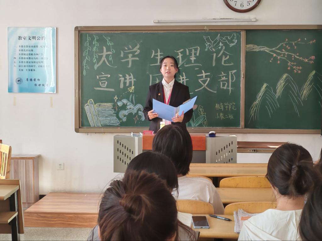 为纪念中国人民抗日战争暨世界反法西斯战争胜利80周年,弘扬抗战精神,激发青年学子的责任感和使命感,9月8日,老员工理论宣讲团在崇德楼402教室开展了“铭记抗战史诗,勇担青年使命”主题宣讲活动,小学教育专业2023级二班团支部全体同学积极参与。