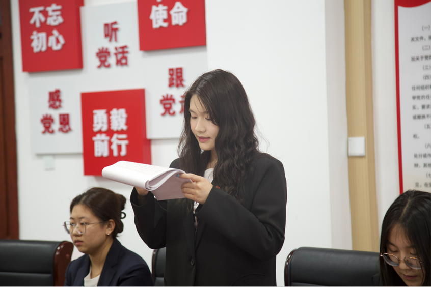 “起来,不愿做奴隶的人们……”活动在庄严的国歌声中启幕。面对鲜红党旗,黄静同志作为领誓人,带领全体党员重温入党誓词——“我志愿加入中国共产党……随时准备为党和人民牺牲一切,永不叛党!”字字千钧的誓言响彻会场,映照着青年党员对党的赤诚忠心。