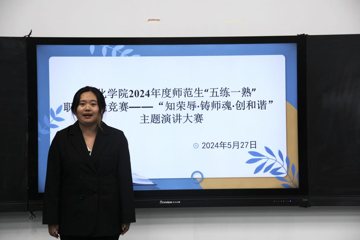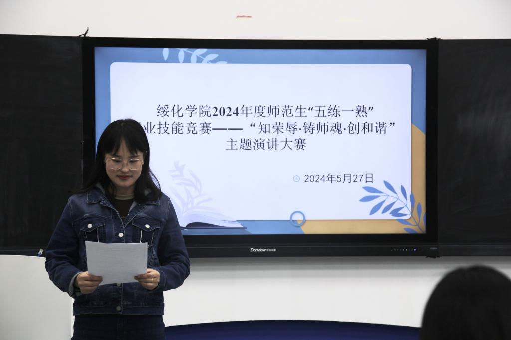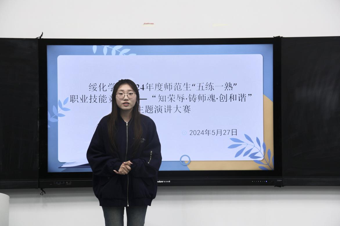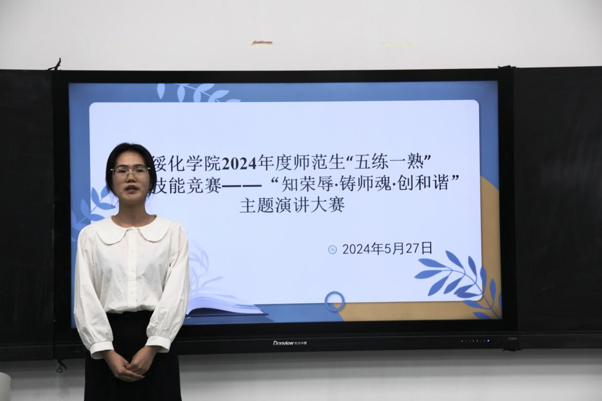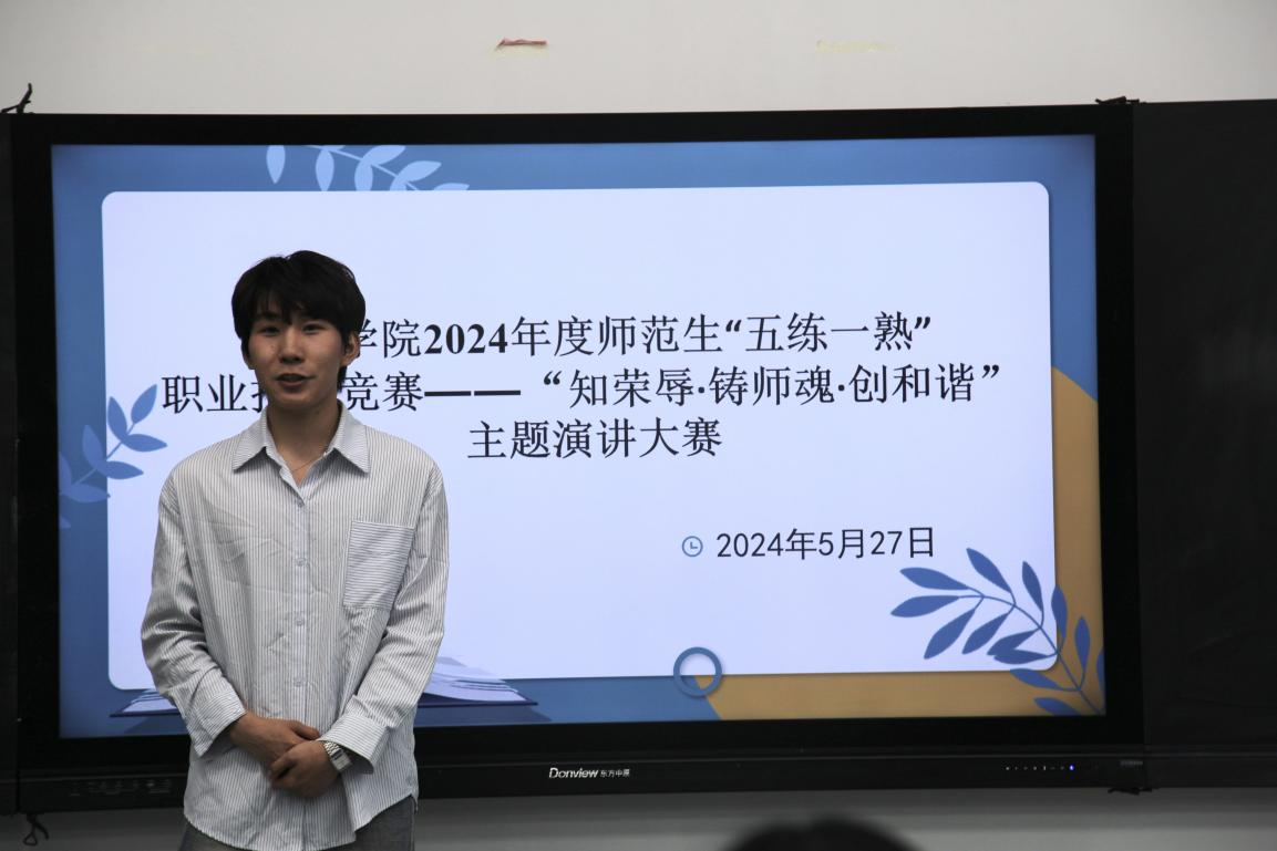 5月27日晚,由教务处主办,教师教育行业公司承办的2024年度师范生“五练一熟”职业技能竞赛——“知荣辱·铸师魂·创和谐”主题演讲比赛在崇德楼223教室顺利举办。经过统一报名,共有来自伟德国际1946、特殊伟德国际1946、外国语公司、信息工程公司、食品制药工程公司、文学与传媒公司、艺术设计公司、音乐公司、体育公司的28名师范类专业员工参加比赛。