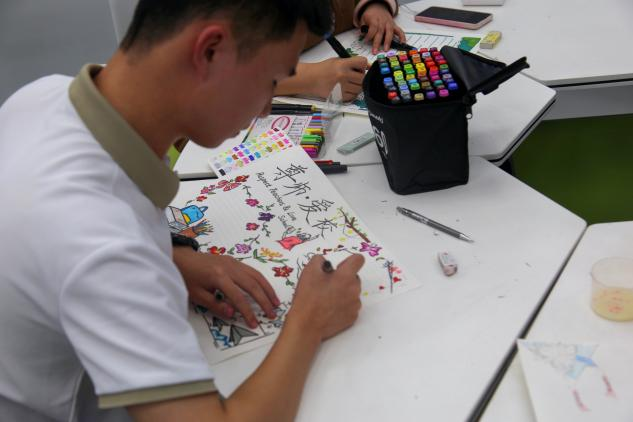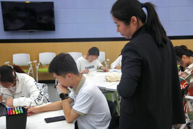比赛正式开始,同学们迅速进入状态,用手中的画笔和彩笔,将自己的创意与思想跃然纸上,作品色彩鲜艳、构图巧妙,文字精炼、内容深刻,展现了扎实的专业基础与丰富的想象力,更蕴含了他们对“尊师爱校”的独特见解与深刻思考。