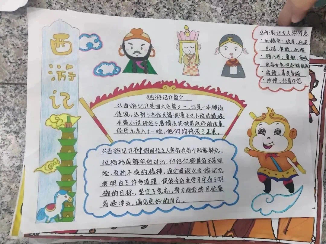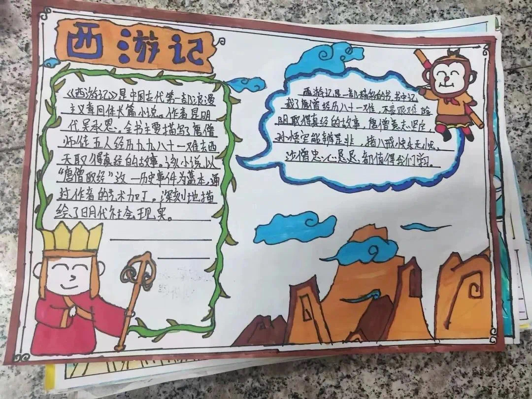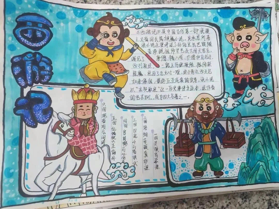 “妙笔生美图,名著记心中”。同学们精心设计的手抄报,在学习经典的同时也进一步锻炼了绘画能力。