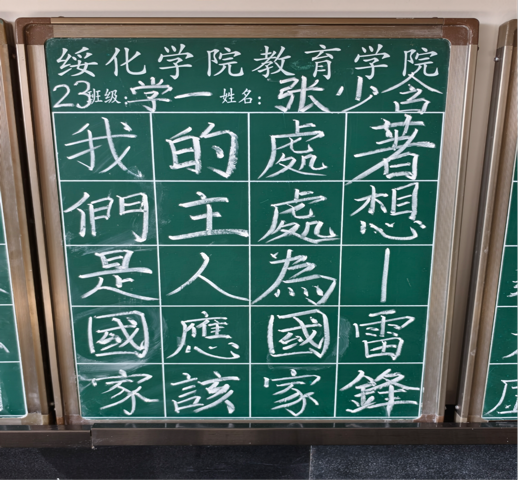 粉笔凝情,绘就精神长卷。每一个粉笔字都凝聚着同学们对雷锋精神的理解与传承,展现着同学们积极向上的精神风貌。