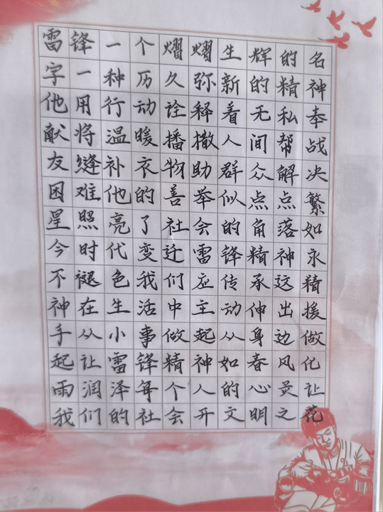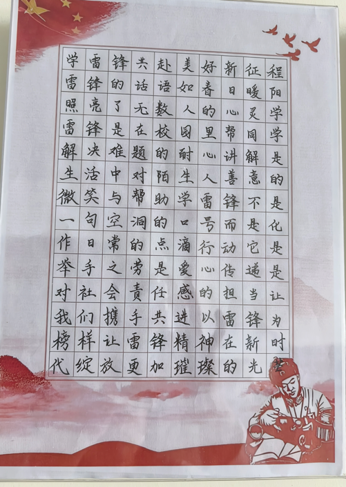 硬笔挥毫,书写雷锋篇章。同学们以笔为刃,以纸为媒,字里行间流淌着对雷锋的敬仰之情,在一笔一画中深刻领悟了雷锋精神的真谛。