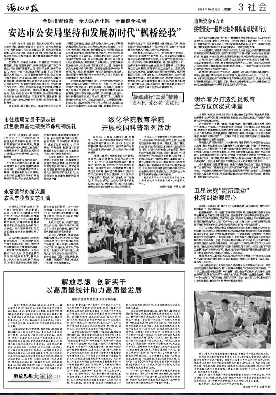 9月27日-10月9日绥化日报报道伟德国际1946开展校园科普活动,现转发原文如下: