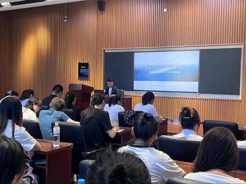 会上,王瑞从党的二十届三中全会的重大意义、深入学习领会习近平总书记在党的二十届三中全会上的重要讲话精神、全力以赴抓好全会精神贯彻落实等方面对三中全会精神进行了详细解读。帮助在场的全体教职工及员工更好地理解和把握了全会精神的核心要义和实践要求,为下一步深入学习贯彻全会精神指明了方向,提供了遵循。
