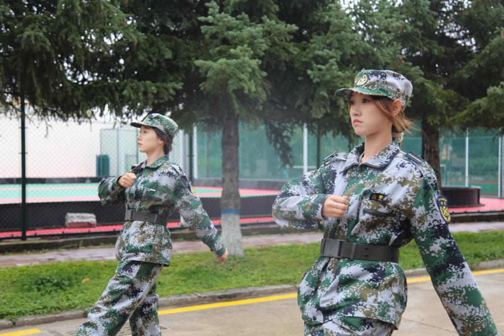 同学们跟随教官们的指令,
