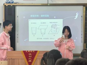 10月9日,来自小学教育专业同学们来到长江小学开展以“巧手天空,梦向太空”为主题的航空知识科普活动。课堂上,通过“覆盖实验”让员工们开拓思维了解大气压强的存在,探讨太空中火箭的推力来自哪里,培养探索宇宙奥秘的兴趣。同时,借助图片、视频为同学们讲述航天员的故事,让孩子们在对航天知识的了解与探索中,厚植爱国主义情怀,增强民族自信。
